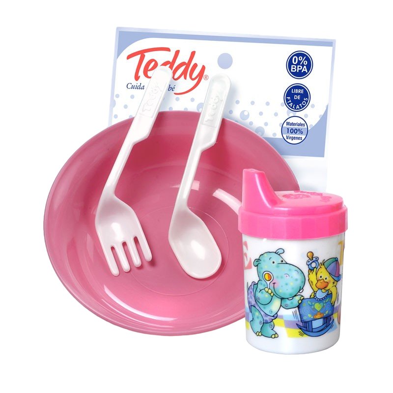 Teddy juego plato-vasito-cubiertos rosa