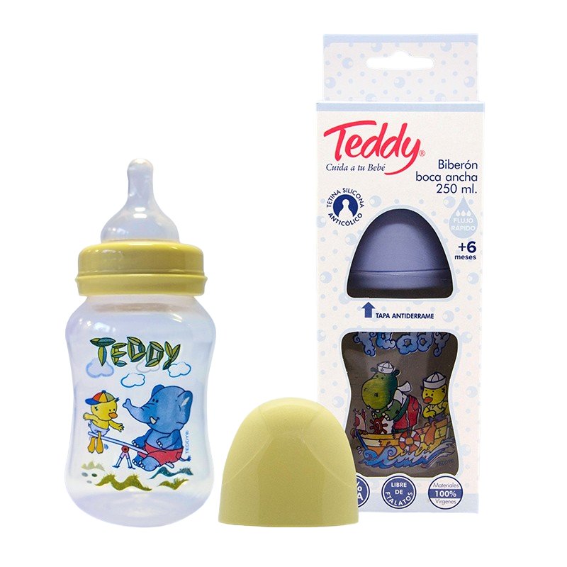 Teddy biberon boca ancha 250ml tet sil +6 neutro
